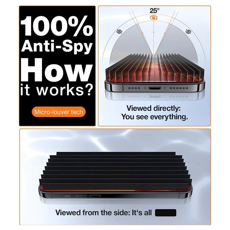 - Anti-Spionage-Displayschutzfolien: Diese Schutzfolien nutzen Mikrolamellen-Technologie, um seitliche Einblicke zu verhindern. Der Bildschirm ist nur aus einem direkten Winkel sichtbar – perfekt, um Ihre persönlichen oder geschäftlichen Daten zu schützen.