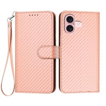Premium-Hülle mit Trageriemen für iPhone 16 - Kohlefaserstruktur