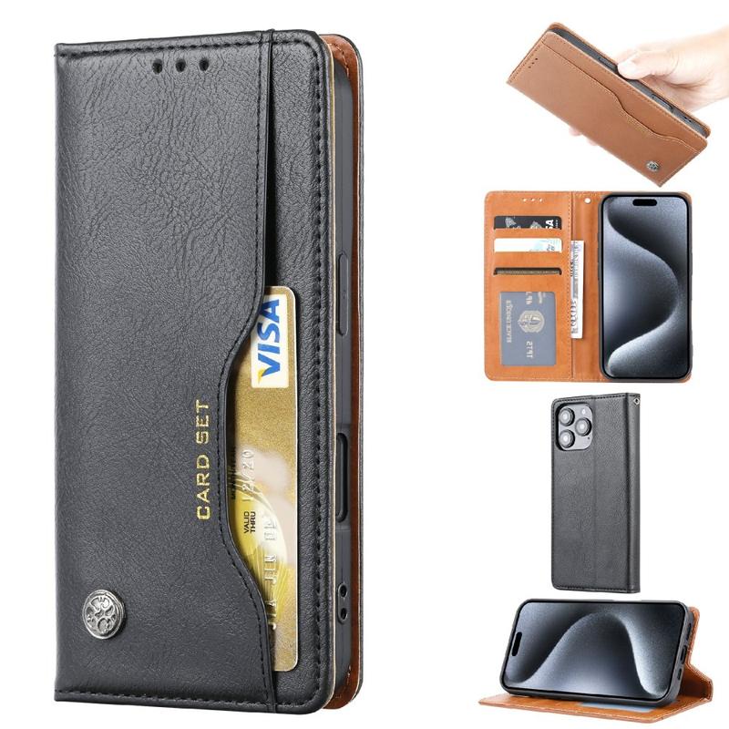 Kartenset Wallet Hülle für iPhone 16 Pro - Magnetischer Verschluss, mehrere Kartenfächer, Kickstand