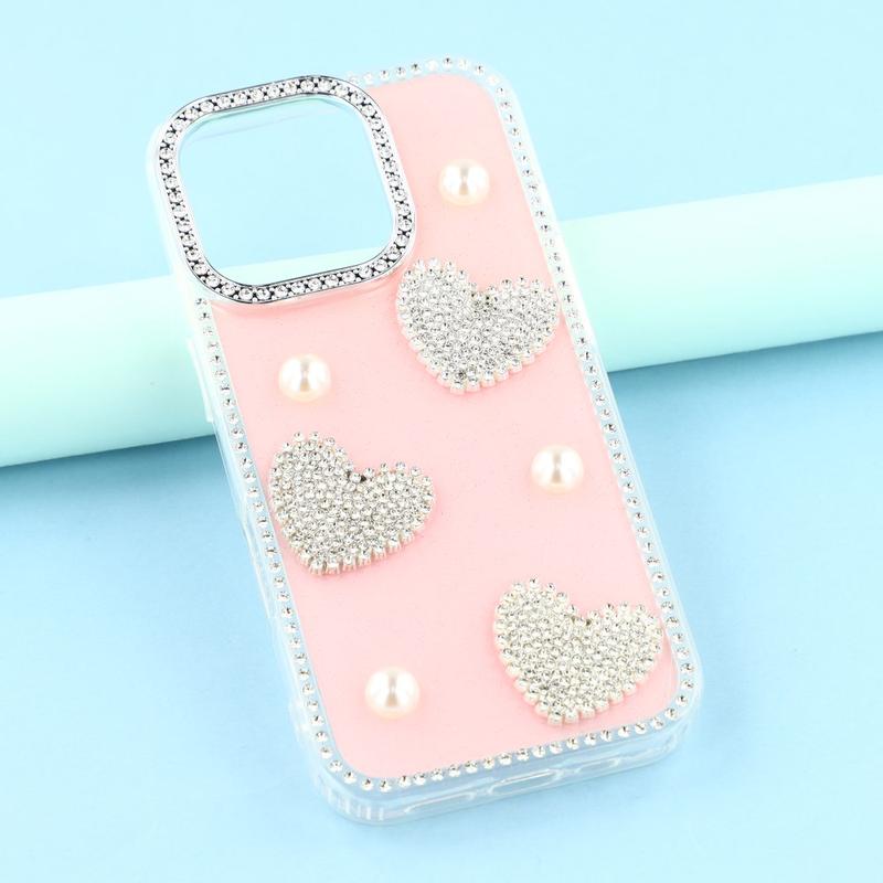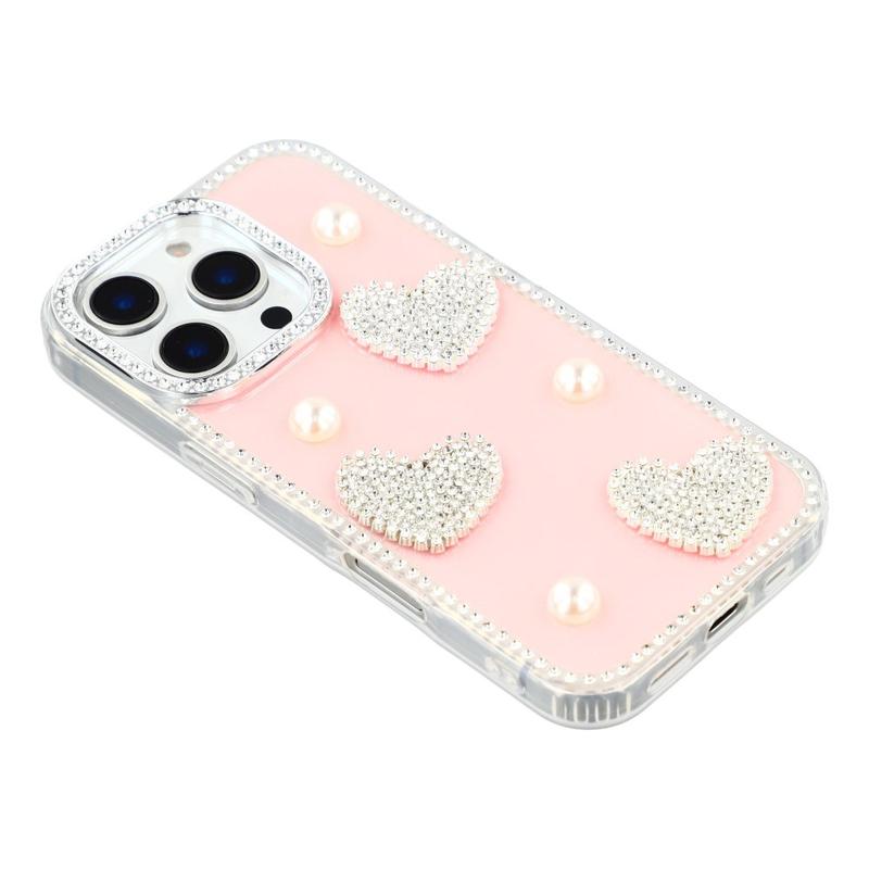 Diese iPhone 16 Pro Max Hülle kombiniert zuverlässigen Schutz im Alltag mit glamourösem Stil. Mit schimmernden Strasssteinen an den Rändern und funkelnden Perlenherzen auf der Rückseite verwandelt sie dein iPhone 16 Pro Max in ein modisches Accessoire und schützt es gleichzeitig vor Kratzern und Stößen.