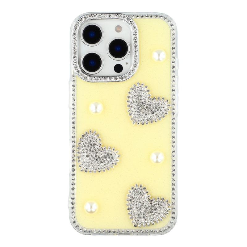 Diese iPhone 16 Pro Hülle kombiniert zuverlässigen Schutz im Alltag mit glamourösem Stil. Mit schimmernden Strasssteinen an den Rändern und funkelnden Perlenherzen auf der Rückseite verwandelt sie dein iPhone 16 Pro in ein modisches Accessoire und schützt es gleichzeitig vor Kratzern und Stößen.