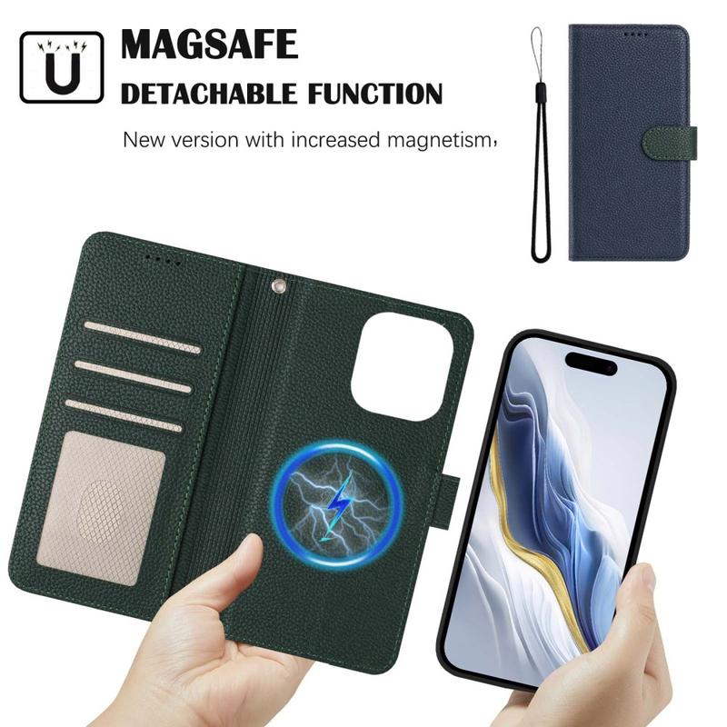 Abnehmbare Wallet Hülle mit MagSafe, RFID-Schutz und Handschlaufe für iPhone 16 Pro
