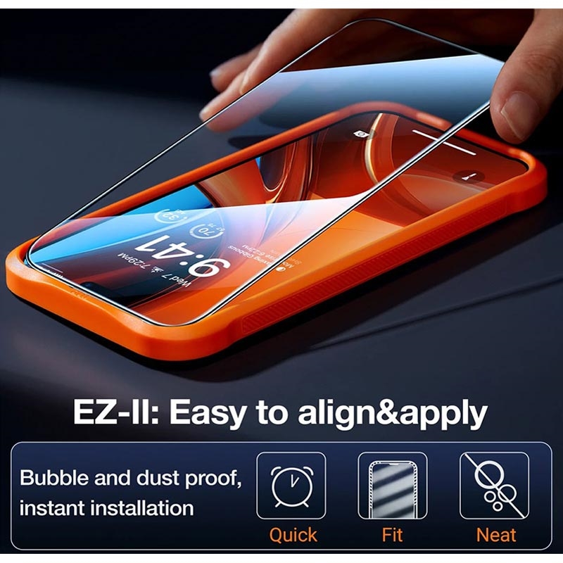 - Automatischer Ausrichtungsrahmen: Dank des benutzerfreundlichen automatischen Ausrichtungsrahmens lässt sich die Schutzfolie schnell und blasenfrei anbringen und passt jedes Mal perfekt.