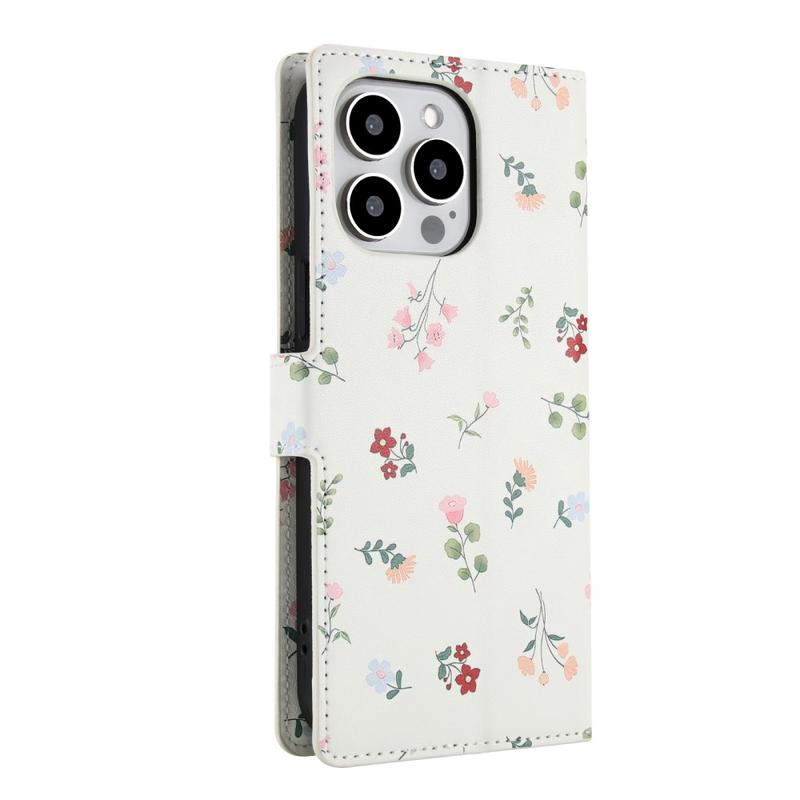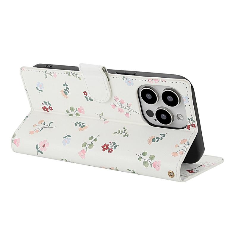 Rhombisches Blumen Wallet Hülle für iPhone 16 Pro - mit Riemen und Kartenfächern
