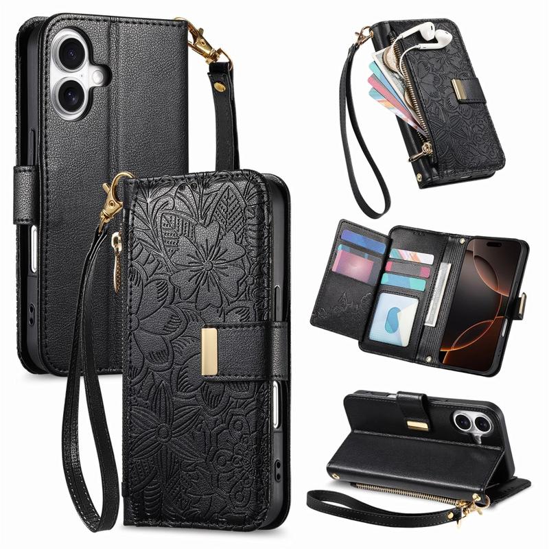 Im Gegensatz zu gewöhnlichen iPhone 16-Hüllen vereint diese Hülle Schutz, Organisation und Eleganz in einem. Der florale Aufdruck verleiht ihr einen stilvollen Touch, während die Reißverschlusstasche und die Handschlaufe unübertroffenen Komfort im Alltag und auf Reisen bieten.