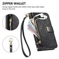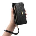 Wallet Hülle mit Blumen und Blattmuster mit Reißverschlusstasche & Handgelenkband für iPhone 16