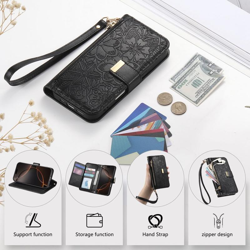 Brieftaschentaschen erfreuen sich zunehmender Beliebtheit, da sie eine umweltfreundliche Alternative zum Tragen einer Brieftasche und einer iPhone 16 Tasche darstellen. Das florale Prägeverfahren wertet nicht nur das Aussehen auf, sondern stärkt auch die Polyurethan-Oberfläche und macht sie widerstandsfähiger gegen Kratzer.