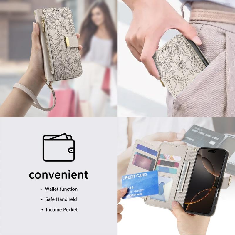 Im Gegensatz zu gewöhnlichen iPhone 16-Hüllen vereint diese Hülle Schutz, Organisation und Eleganz in einem. Der florale Aufdruck verleiht ihr einen stilvollen Touch, während die Reißverschlusstasche und die Handschlaufe unübertroffenen Komfort im Alltag und auf Reisen bieten.