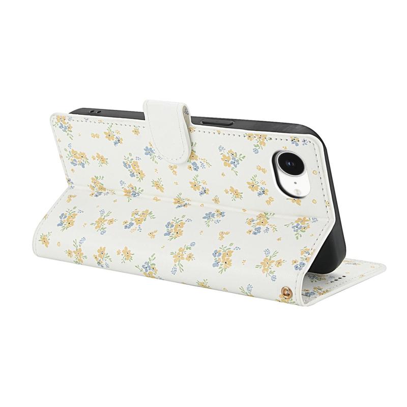 Rhombisches Blumen Wallet Hülle für iPhone 16e - mit Riemen und Kartenfächern