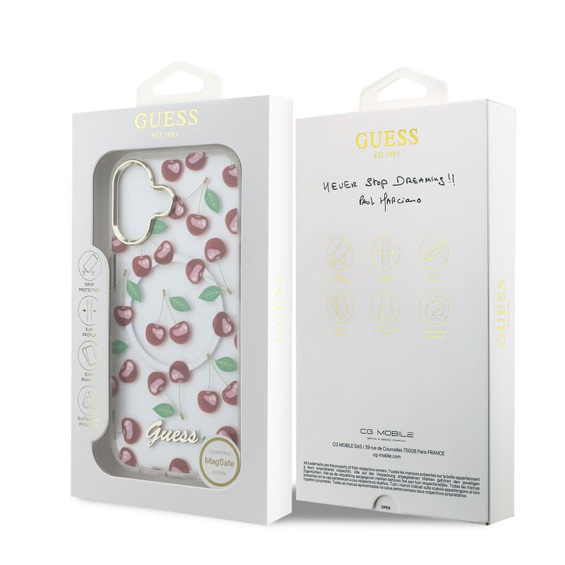 Guess IML Glitter Cherry MagSafe Hybrid-Hülle für iPhone 17 - Schutzhülle aus PC und TPU für die Rückseite