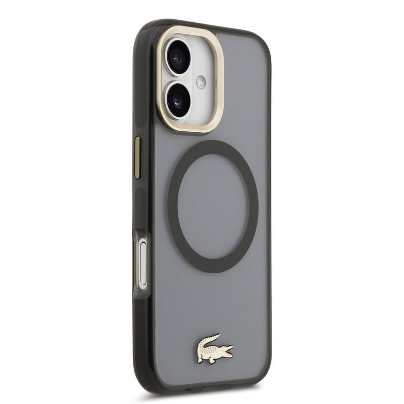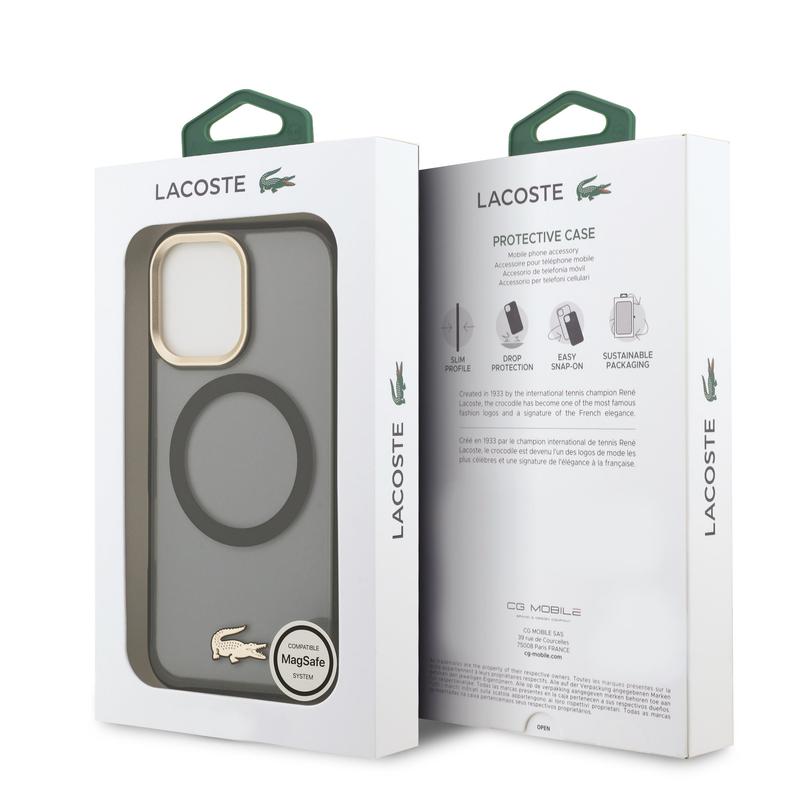 Lacoste Frosted Finish Gold Logo Hybrid Hülle für iPhone 17 - MagSafe-kompatibel, Premium-Rückseite mit goldenem Logo und Kamerarahmen