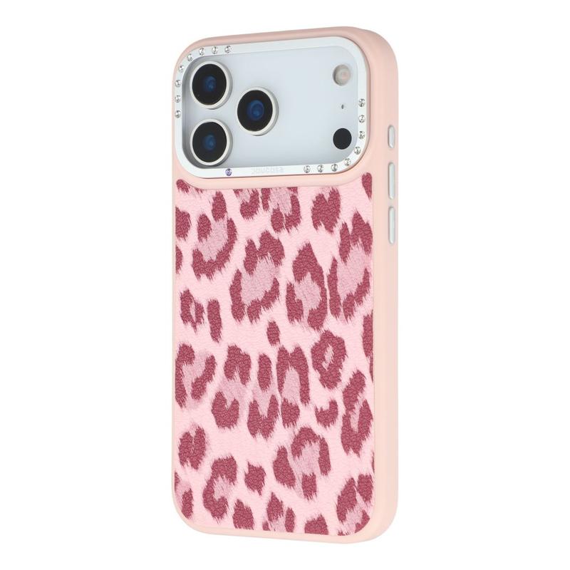 Jaucase Magnetische Hybridhülle mit Leopardenmuster für iPhone 17 Pro Max - PU + TPU + PC mit Strass Objektiv Rahmen