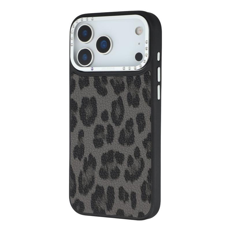 Jaucase Magnetische Hybridhülle mit Leopardenmuster für iPhone 17 Pro - PU + TPU + PC mit Strass Objektiv Rahmen