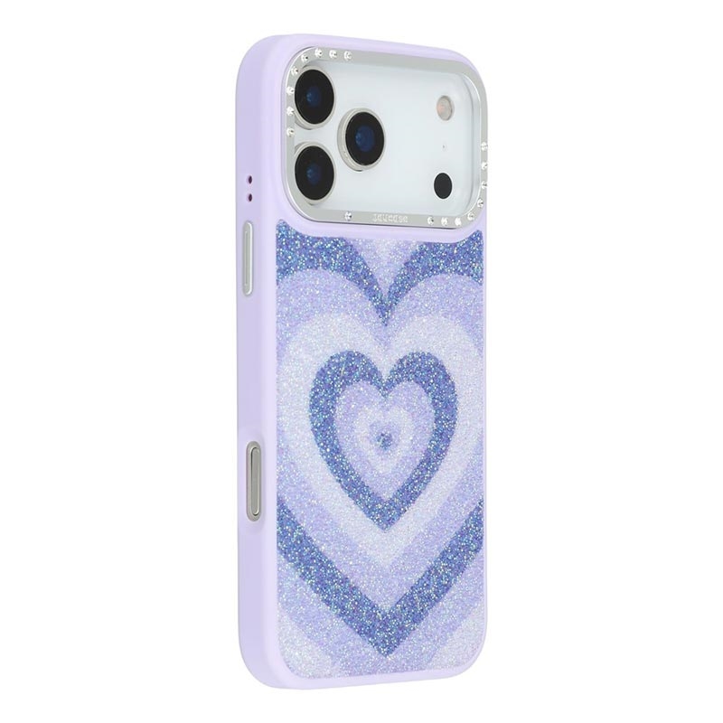 Jaucase Magnetische Hybridhülle mit Herzmuster für iPhone 17 Pro Max - Polyurethan + TPU + PC mit Rhinestone Lens Rahmen