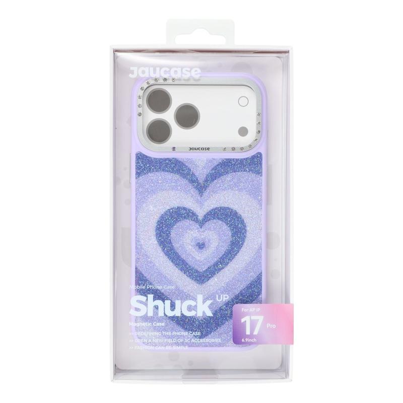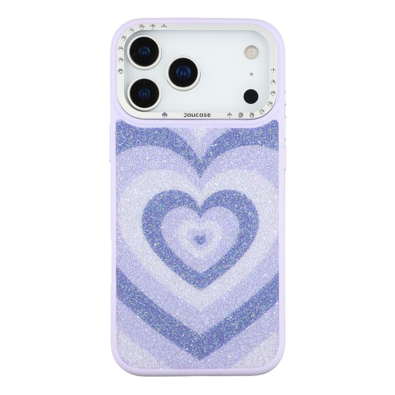 Jaucase Magnetische Hybridhülle mit Herzmuster für iPhone 17 Pro - Polyurethan + TPU + PC mit Rhinestone Lens Frame