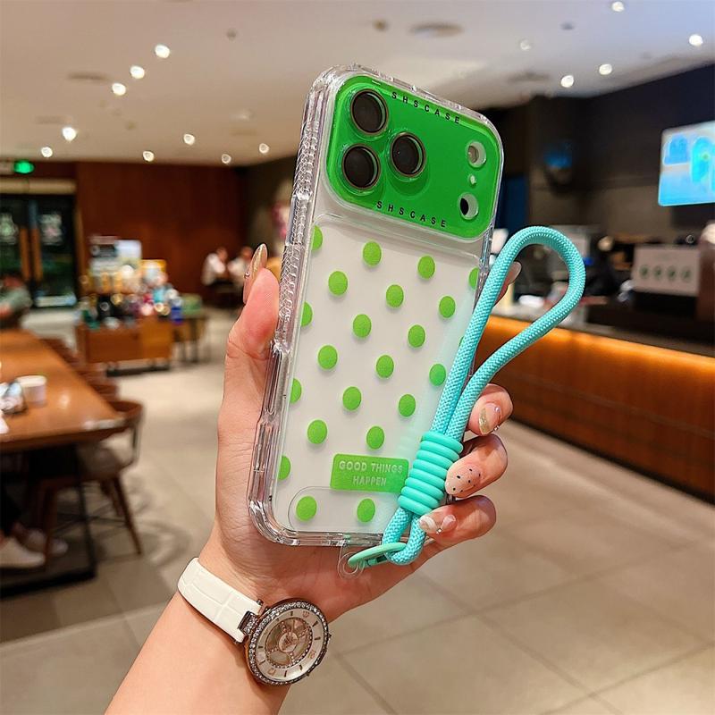 Verleihen Sie Ihrem iPhone 17 Pro Max mit diesem Polka Dot Hybrid Case sowohl Charme als auch Schutz. Hergestellt aus einer Mischung aus TPU und PC, bietet es Haltbarkeit, Flexibilität und täglichen Schutz vor Kratzern und Stürzen. Die transparente Rückseite zeigt ein verspieltes Polka-Dot-Design und enthält eine gehärtete Glaslinsenfolie zum Schutz Ihrer Kamera. Mit einer passenden Handschlaufe und dem motivierenden Spruch "GOOD THINGS HAPPEN" vereint diese Hülle Stil, Positivität und Funktionalität in einem.