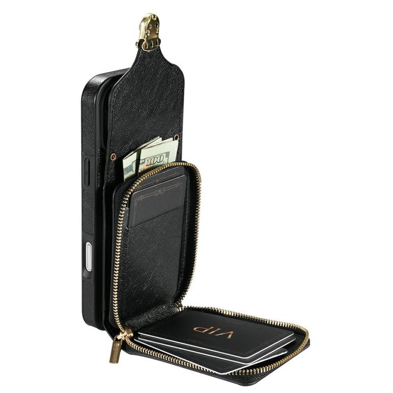Tragen Sie Ihr Telefon, Ihre Karten und Ihr Bargeld in einem eleganten Accessoire mit dieser Reißverschluss-Hülle für das iPhone 17 Pro Max. Sie besteht aus strapazierfähigem TPU, das mit hochwertigem Polyurethan-Leder beschichtet ist, und bietet alltäglichen Schutz, ohne dass ein separates Portemonnaie erforderlich ist. Perfekt für alle, die Stil, Komfort und Sicherheit in einem wollen.