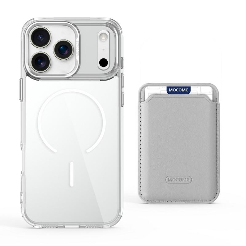 Schützen Sie Ihr Gerät stilvoll mit dem MagSafe Case für das iPhone 17 Pro Max, das sowohl auf Haltbarkeit als auch auf Komfort ausgelegt ist. Diese Hülle besteht aus einer Hybridkonstruktion aus TPU und PC und kombiniert Flexibilität mit Stärke, um Ihr Gerät vor Stürzen, Kratzern und täglichem Verschleiß zu schützen. Dank des integrierten Magnetrings ist sie vollständig kompatibel mit MagSafe-Ladegeräten und magnetischen Autohalterungen, während die abnehmbare, schlanke Kartentasche mit zwei Magneten das Mitführen von 1-2 Karten ermöglicht, ohne dass sie zu groß wird. Die kristallklare Oberfläche lässt Ihr iPhone 17 Pro Max elegant und originell aussehen, während verstärkte Ränder und erhöhte Einfassungen einen Rundumschutz für Ihr Display und Ihre Kamera gewährleisten.