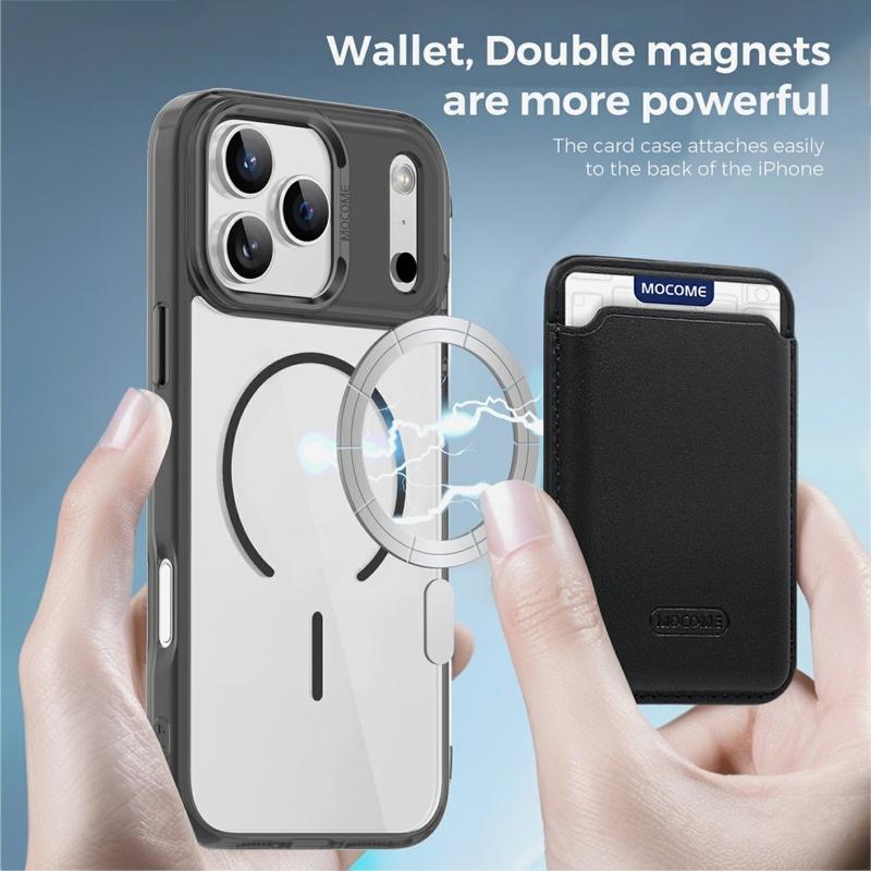 Schützen Sie Ihr Gerät stilvoll mit dem MagSafe Case für das iPhone 17 Pro Max, das sowohl auf Haltbarkeit als auch auf Komfort ausgelegt ist. Diese Hülle besteht aus einer Hybridkonstruktion aus TPU und PC und kombiniert Flexibilität mit Stärke, um Ihr Gerät vor Stürzen, Kratzern und täglichem Verschleiß zu schützen. Dank des integrierten Magnetrings ist sie vollständig kompatibel mit MagSafe-Ladegeräten und magnetischen Autohalterungen, während die abnehmbare, schlanke Kartentasche mit zwei Magneten das Mitführen von 1-2 Karten ermöglicht, ohne dass sie zu groß wird. Die kristallklare Oberfläche lässt Ihr iPhone 17 Pro Max elegant und originell aussehen, während verstärkte Ränder und erhöhte Einfassungen einen Rundumschutz für Ihr Display und Ihre Kamera gewährleisten.