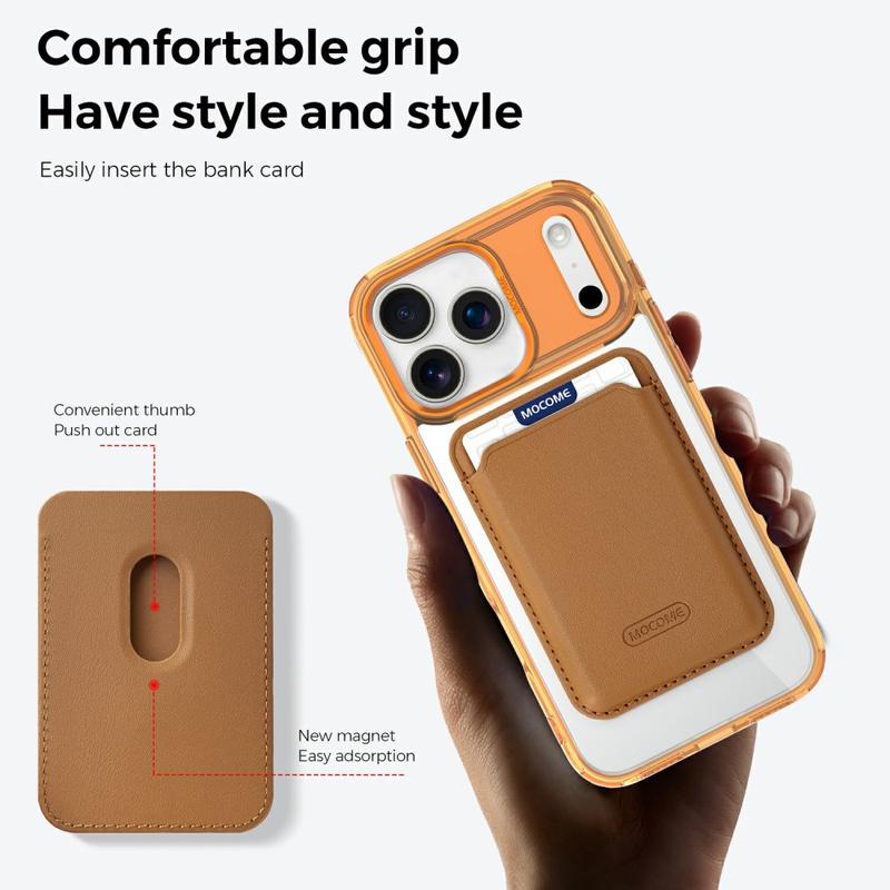 Schützen Sie Ihr Gerät stilvoll mit dem MagSafe Case für das iPhone 17 Pro Max, das sowohl auf Haltbarkeit als auch auf Komfort ausgelegt ist. Diese Hülle besteht aus einer Hybridkonstruktion aus TPU und PC und kombiniert Flexibilität mit Stärke, um Ihr Gerät vor Stürzen, Kratzern und täglichem Verschleiß zu schützen. Dank des integrierten Magnetrings ist sie vollständig kompatibel mit MagSafe-Ladegeräten und magnetischen Autohalterungen, während die abnehmbare, schlanke Kartentasche mit zwei Magneten das Mitführen von 1-2 Karten ermöglicht, ohne dass sie zu groß wird. Die kristallklare Oberfläche lässt Ihr iPhone 17 Pro Max elegant und originell aussehen, während verstärkte Ränder und erhöhte Einfassungen einen Rundumschutz für Ihr Display und Ihre Kamera gewährleisten.