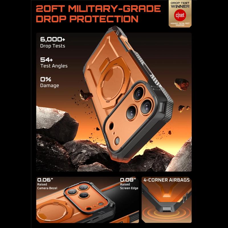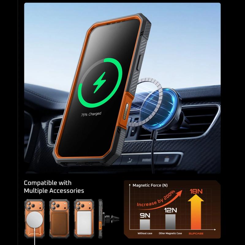 Das SUPCASE Unicorn Beetle Grip Pro Mag für das iPhone 17 Pro Max wurde für alle entwickelt, die Wert auf Haltbarkeit und Funktionalität legen. Mit stoßfestem TPU und verstärkten Ecken erfüllt es den MIL-STD 810G-Standard und schützt Ihr Gerät vor Stürzen aus bis zu 15 Fuß Höhe, während es vor Kratzern und täglichem Verschleiß geschützt ist.