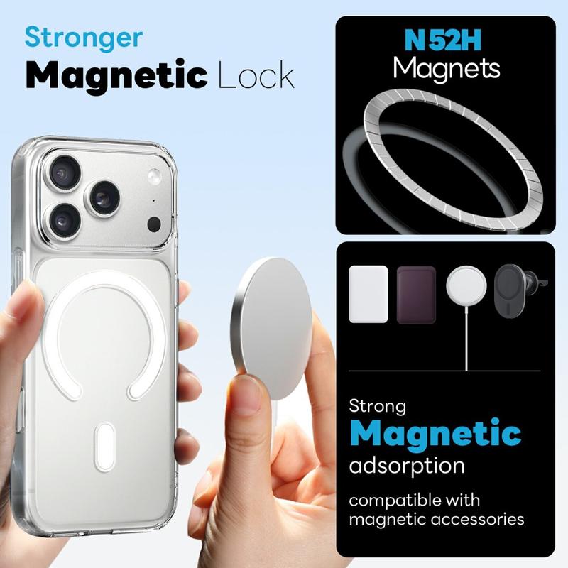 - MagSafe-kompatibles magnetisches Design - Eingebaute starke Magnete gewährleisten eine präzise Ausrichtung für kabelloses Qi-Laden und eine mühelose Verbindung mit magnetischem Zubehör wie Powerbanks, Autohalterungen oder Geldbörsen.
