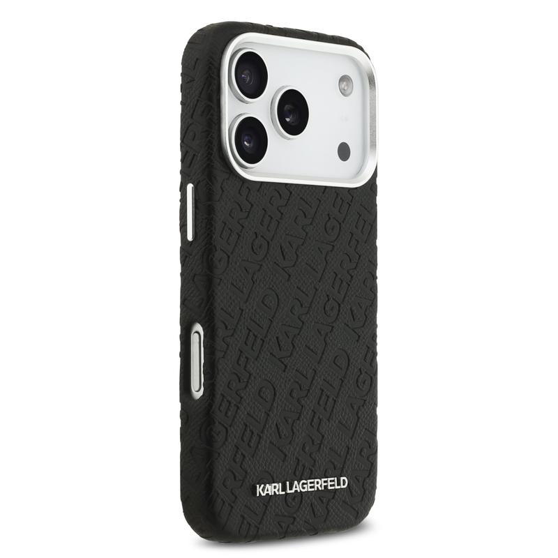 Karl Lagerfeld Grained Repeated Logo MagSafe Hülle für iPhone 17 Pro - Premium Polyurethan Rückseitenschutz