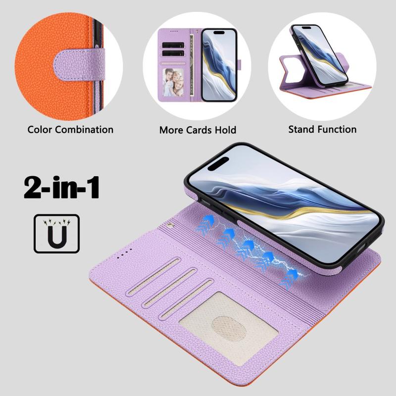 Genießen Sie die Freiheit einer abnehmbaren 2-in-1-Brieftasche. Sie verfügt über: 2 Kartenfächer, 1 Fotofach, 1 Bargeldfach.