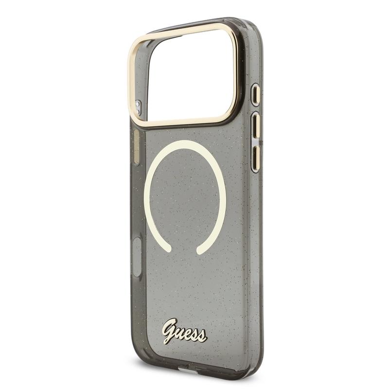 Guess IML Glitter Script Armband MagSafe Hülle für iPhone 17 Pro Max - Glitzernde Rückseite mit Handgelenkband, PC+TPU-Schutz, MagSafe-kompatibel