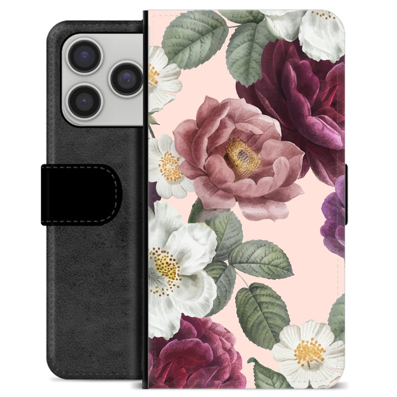 iPhone 17 Pro Premium Schutzhülle mit Geldbörse - Romantische Blumen