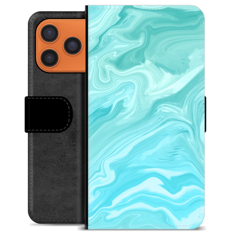 iPhone 17 Pro Max Premium Schutzhülle mit Geldbörse - Blauer Marmor
