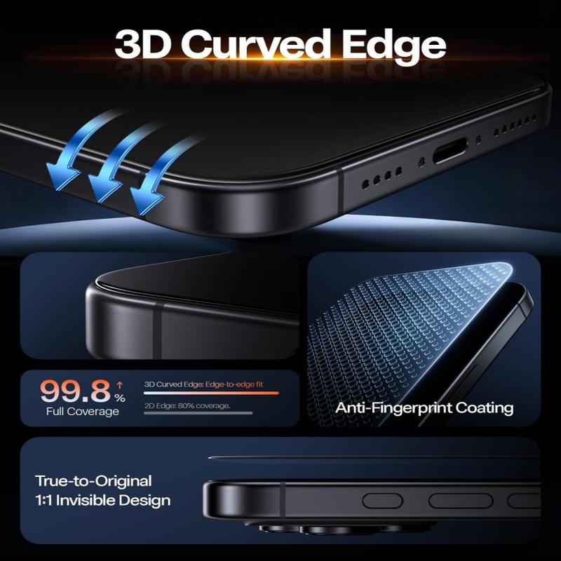Es besteht aus fortschrittlichem 9H+ Glas in Luft- und Raumfahrtqualität und einer mehrschichtigen Schutzstruktur, die vor Stürzen, Kratzern und Stößen schützt. Das 3D-Design mit gebogenen Kanten passt sich nahtlos an die Konturen des Bildschirms an und sorgt für ein glattes Gefühl und eine nahezu randlose Abdeckung. Mit dem mitgelieferten automatischen Ausrichtungswerkzeug und dem ausziehbaren Staubentfernungsrahmen ist die Installation schnell und blasenfrei.
