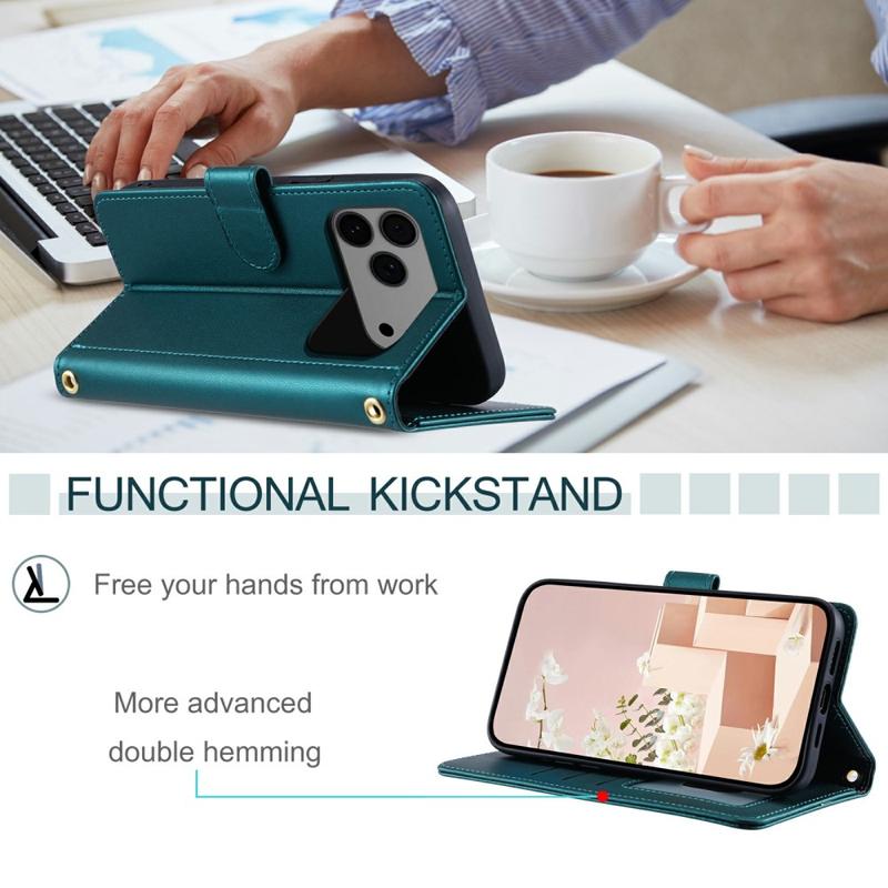 Schützen Sie Ihr iPhone 17 Pro mit dieser luxuriösen, gesteppten Brieftaschenhülle. Hergestellt aus TPU-Material mit PU-Lederbeschichtung, ist diese Hülle kratzfest und anti-fingerprint, sodass Ihr Telefon stilvoll und elegant aussieht. Die Nahtlinie bildet ein Rautenmuster und verleiht der Hülle eine modische und schöne Note. Der erhöhte Rand von Kamera und Bildschirm bietet effektiven Schutz vor Kratzern, während die präzisen Aussparungen vollen Zugriff auf alle Tasten, Anschlüsse und andere Funktionen ermöglichen. Das Brieftaschendesign ermöglicht die einfache Aufbewahrung wichtiger Karten und Bargeld. Neben zusätzlichem Schutz vor Kratzern, Stößen, Stürzen und alltäglichen Beschädigungen wird diese Hülle außerdem mit einem Schultergurt und einer Handschlaufe für zusätzlichen Komfort geliefert.
