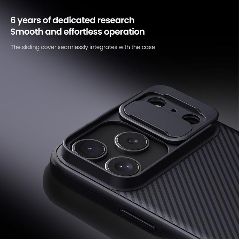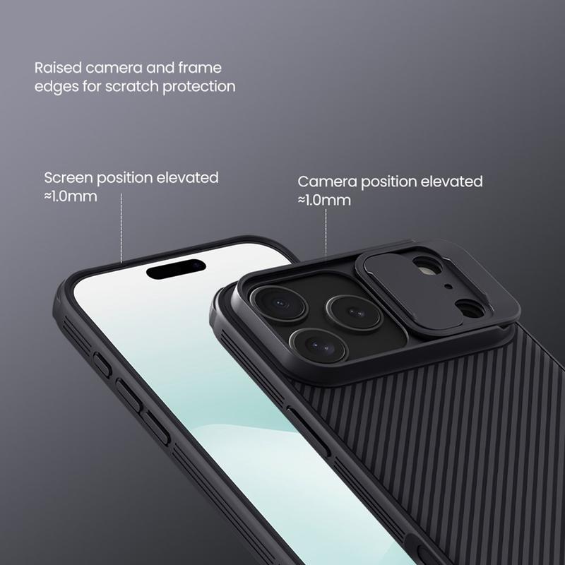 Genießen Sie zusätzliche Privatsphäre und Schutz mit der CamShield Pro-Hybridhülle von Nillkin. Durch die Kombination von starrem Kunststoff und TPU verhindert die Kameraabdeckung Kratzer und schützt gleichzeitig Ihr iPhone 17 Pro Max vor täglicher Abnutzung.