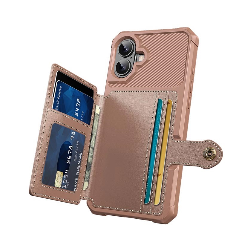- Die Brieftaschenhülle für das iPhone 17 verfügt über einen sicheren Druckknopfverschluss, ein Brieftaschendesign und mehrere Kartenfächer mit einer Geldtasche