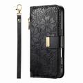 Wallet Hülle mit Blumen und Blattmuster mit Reißverschlusstasche & Handgelenkband für iPhone 17
