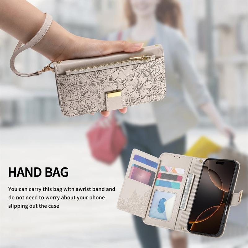Brieftaschentaschen erfreuen sich zunehmender Beliebtheit, da sie eine umweltfreundliche Alternative zum Tragen einer Brieftasche und einer iPhone 17 Tasche darstellen. Das florale Prägeverfahren wertet nicht nur das Aussehen auf, sondern stärkt auch die Polyurethan-Oberfläche und macht sie widerstandsfähiger gegen Kratzer.