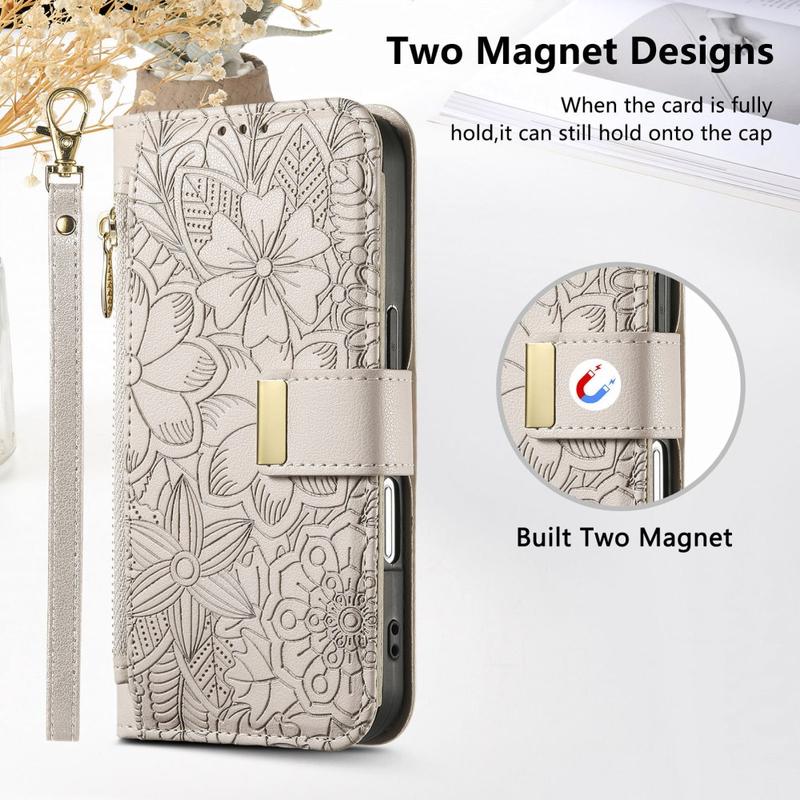 Im Gegensatz zu gewöhnlichen iPhone 17-Hüllen vereint diese Hülle Schutz, Organisation und Eleganz in einem. Der florale Aufdruck verleiht ihr einen stilvollen Touch, während die Reißverschlusstasche und die Handschlaufe unübertroffenen Komfort im Alltag und auf Reisen bieten.