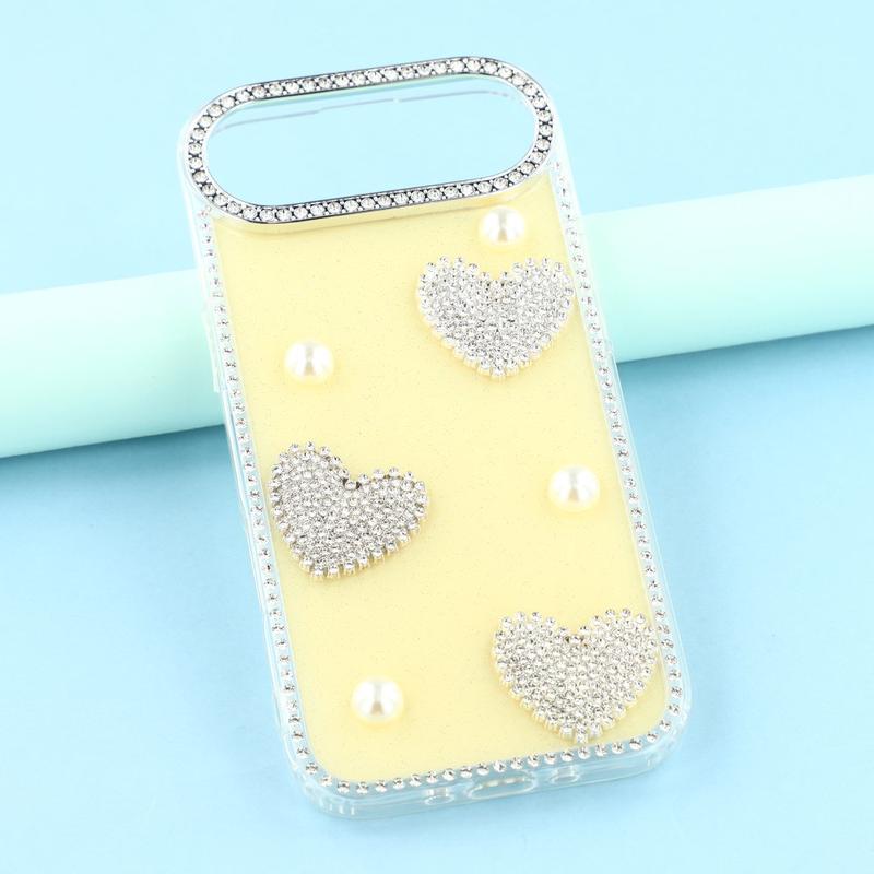 Diese iPhone Air Hülle kombiniert zuverlässigen Schutz im Alltag mit glamourösem Stil. Mit schimmernden Strasssteinen an den Rändern und funkelnden Perlenherzen auf der Rückseite verwandelt sie dein iPhone Air in ein modisches Accessoire und schützt es gleichzeitig vor Kratzern und Stößen.