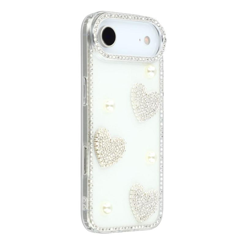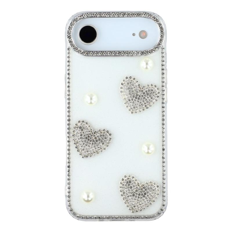 Diese iPhone Air Hülle kombiniert zuverlässigen Schutz im Alltag mit glamourösem Stil. Mit schimmernden Strasssteinen an den Rändern und funkelnden Perlenherzen auf der Rückseite verwandelt sie dein iPhone Air in ein modisches Accessoire und schützt es gleichzeitig vor Kratzern und Stößen.
