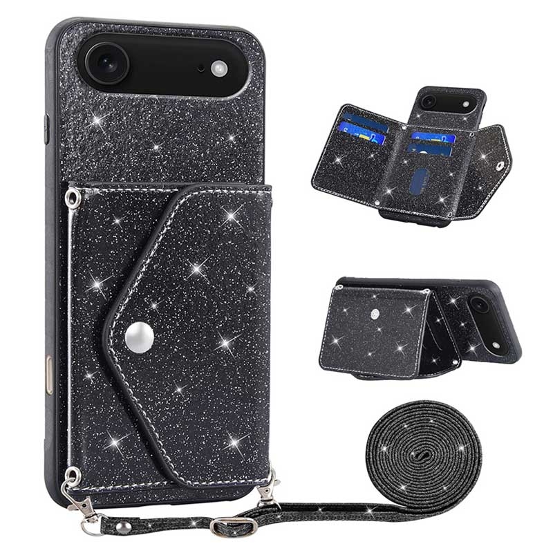 Die hochwertige Hülle aus der Stardust-Serie ist die richtige Wahl, um Ihr iPhone Air vor möglichen Schäden zu schützen. Es hat einen Kartenhalter auf der Rückseite mit einem Druckknopf, der großartig ist, um Ihre wichtigen Karten aufzubewahren und sicher aufzubewahren. Eine glänzende Glitzeroberfläche verleiht Ihrem Telefon einen Hauch von Glamour. Darüber hinaus wird die Hülle mit einem 150cm langen Schultergurt geliefert, mit dem Sie Ihr iPhone Air überall hin mitnehmen können.