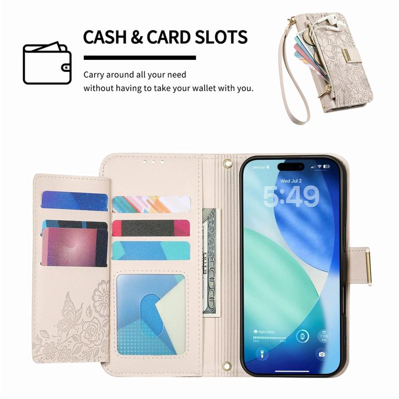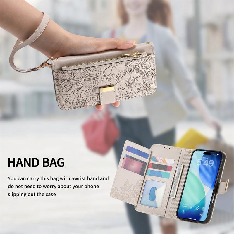 Im Gegensatz zu gewöhnlichen iPhone Air-Hüllen vereint diese Hülle Schutz, Organisation und Eleganz in einem. Der florale Aufdruck verleiht ihr einen stilvollen Touch, während die Reißverschlusstasche und die Handschlaufe unübertroffenen Komfort im Alltag und auf Reisen bieten.