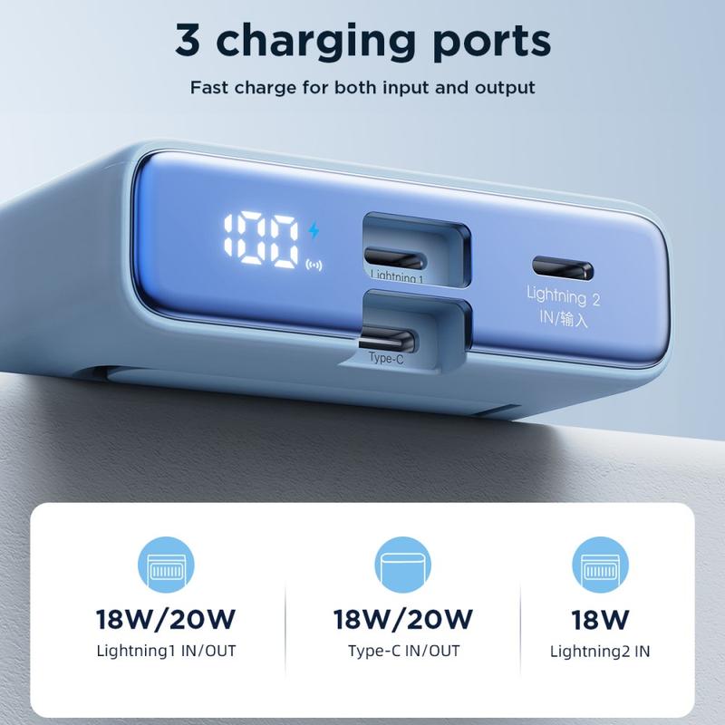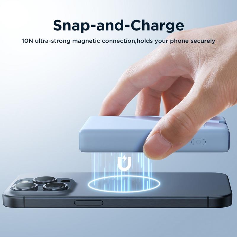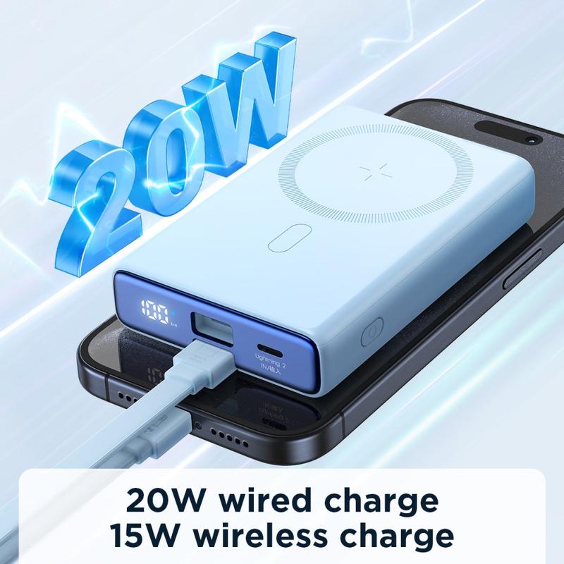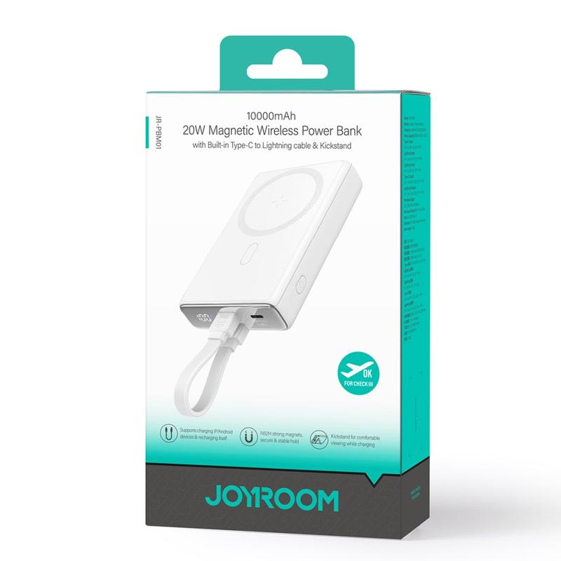 JOYROOM JR-PBM01 PD 20W 10000mAh Telefon Power Bank Magnetic Wireless Charger mit integriertem Kabel / Kickstand - Weiß