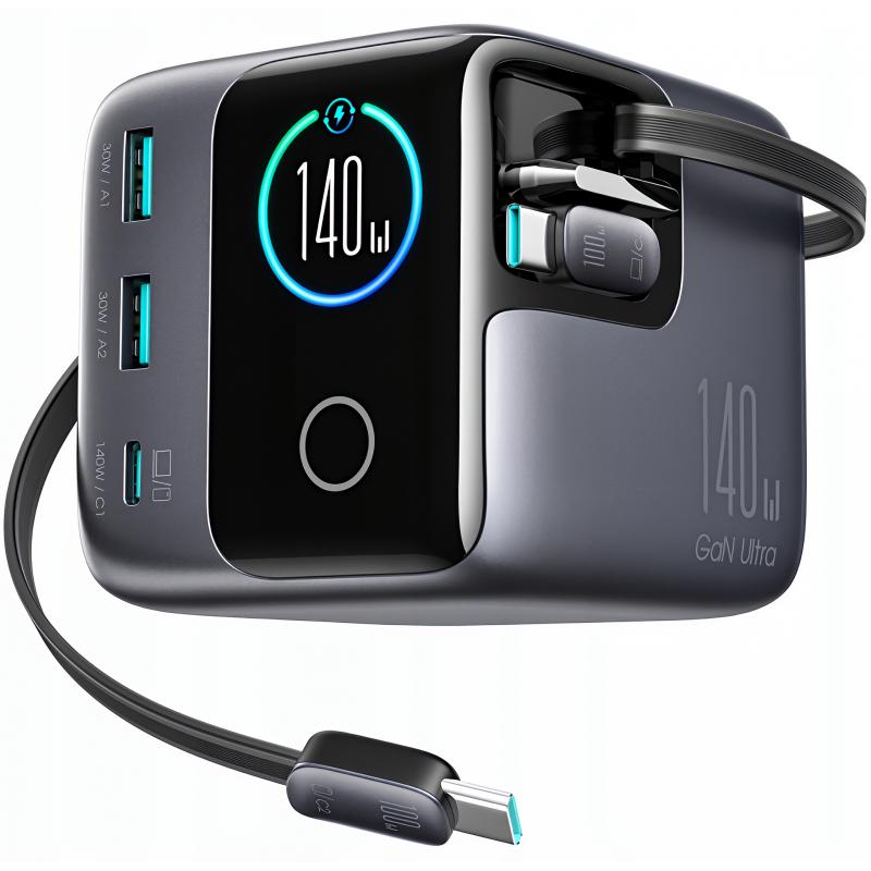 Joyroom JR-TRD01 Podix 140W GaN-Tischladegerät mit einziehbaren USB-C-Kabeln und LCD-Display
