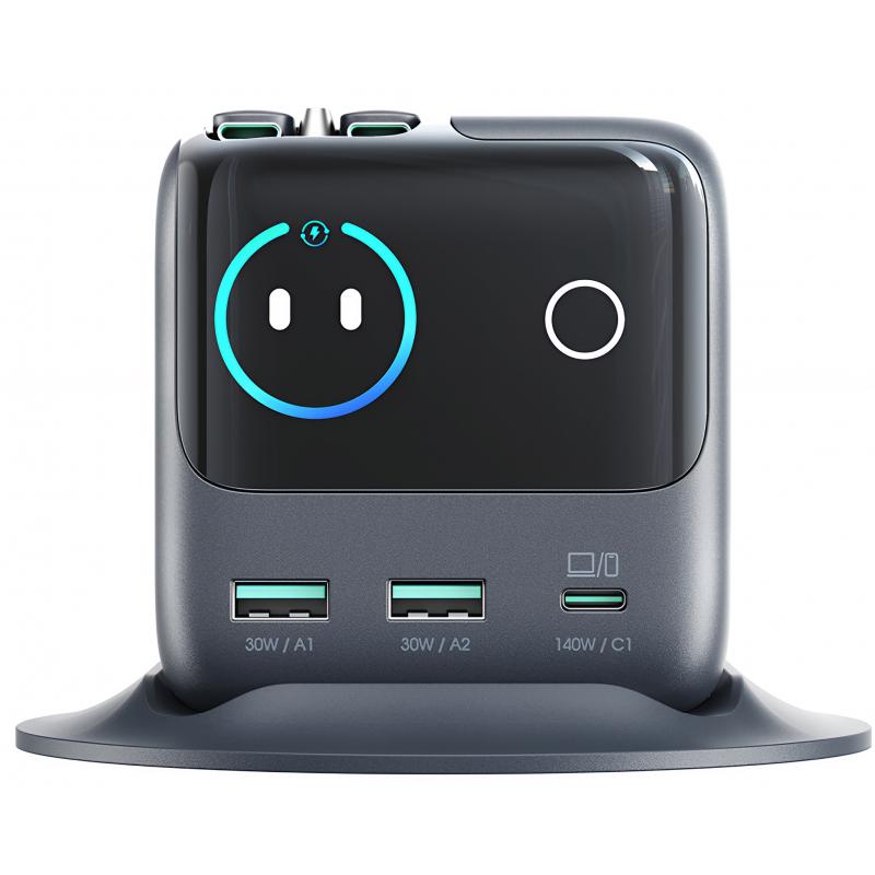 Das JOYROOM JR-TRD01 Podix 140W GaN-Tischladegerät ist eine leistungsstarke All-in-One-Ladestation, die dafür sorgt, dass Ihr Schreibtisch aufgeräumter bleibt, Ihre Kabel besser organisiert sind und Ihre Geräte schneller aufgeladen werden. Mit 5 Ladeanschlüssen, einer Gesamtleistung von bis zu 140W, 2 integrierten ausziehbaren USB-C-Kabeln und einem intelligenten LCD-Display ist es die ideale Desktop-Ladelösung für Laptops, Smartphones, Tablets, Ohrhörer, Smartwatches und andere Alltagsgeräte.