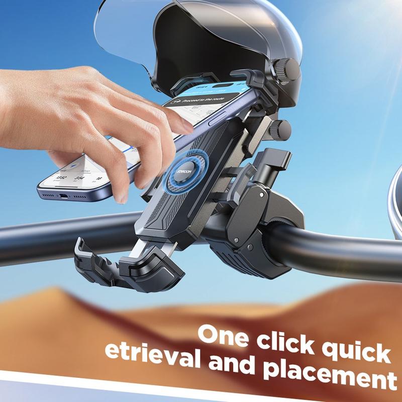 Mit der JOYROOM JR-ZS526 Handyhalterung fahren Sie mit besserer Sicht und sichererem Zugriff auf die Navigation. Sie wurde für Elektrofahrräder, Fahrräder und Motorräder entwickelt und verfügt über einen um 270 Grad verstellbaren Sonnenschutz, der Blendungen und Reflexionen verhindert, sodass Ihr Bildschirm auch bei hellem Tageslicht gut lesbar bleibt. Ein robuster Verriegelungsmechanismus und Metallklemmenarme halten Ihr Smartphone auch auf unebenen Straßen stabil, während Sie Ihr Gerät dank des Schnellverschlusses mit einer Hand in Sekundenschnelle anbringen oder entfernen können.