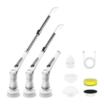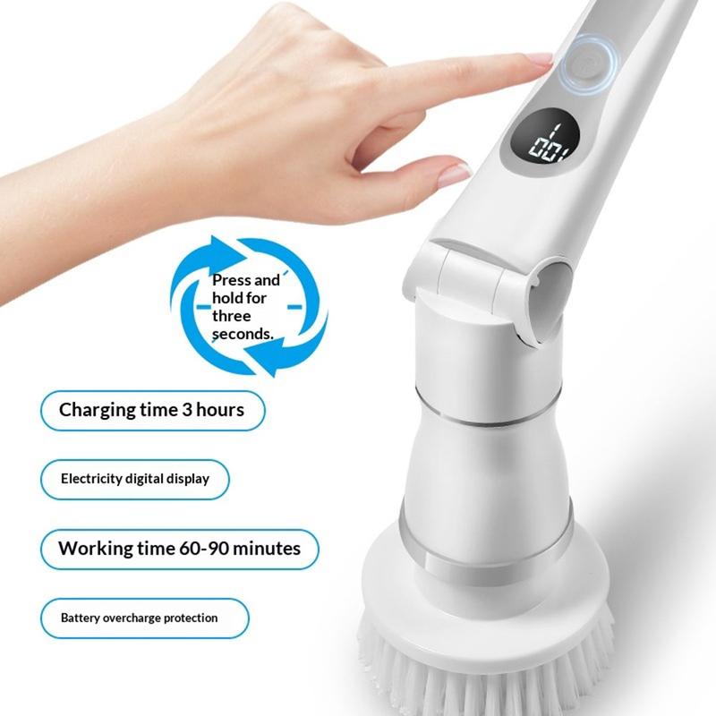 K-109 Akku-Reinigungsbürste mit 4 Aufsätzen - verstellbarer Schrubber mit 3 Geschwindigkeitsstufen, wasserdichtem IPX6-Design und ausziehbarem Griff