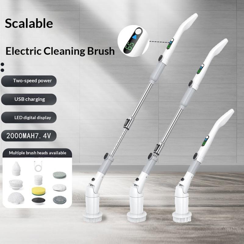 K-130 Elektrische Reinigungsbürste mit 8 Bürstenköpfen - kabelloser, wasserdichter Schrubber mit 2 Geschwindigkeitsstufen für Auto, Küche und Bad