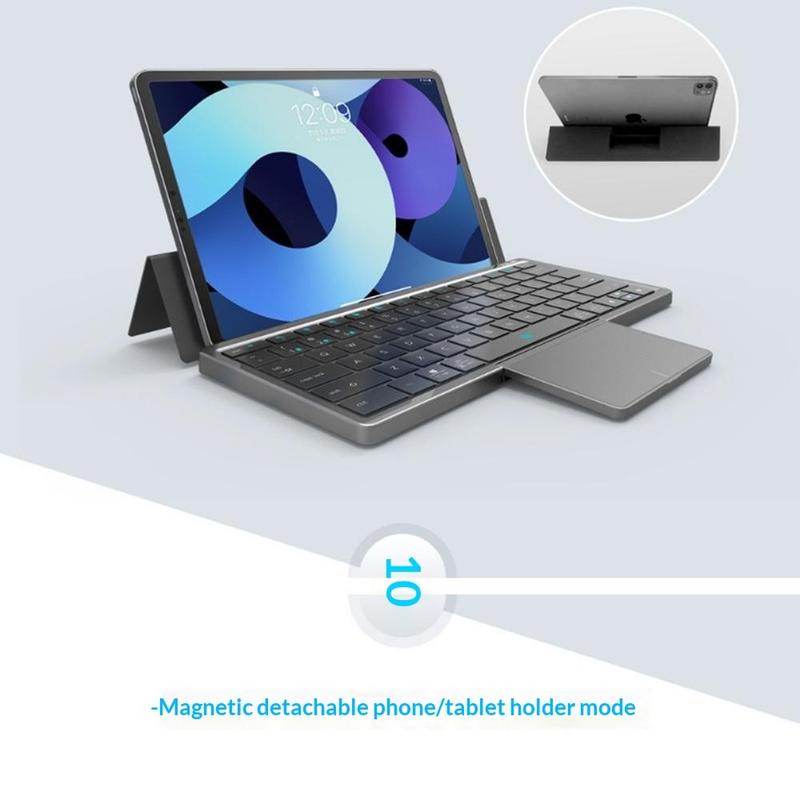 • KF 8700 Faltbare kabellose Tastatur mit Touchpad und Polyurethan-Hülle - Bluetooth-kompatibel für mehrere Geräte, über USB-C aufladbar
