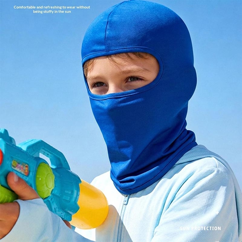 Schützen Sie Ihr Kind bei sonnigen Aktivitäten im Freien mit dieser Kinder-Sturmhaube. Sie besteht aus weichem Ice-Silk-Material, bedeckt den gesamten Kopf und das Gesicht und sorgt bei warmem Wetter für ein kühleres und angenehmeres Hautgefühl.